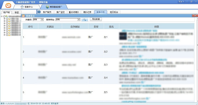 根據(jù)您的競價關(guān)鍵詞可以查看對手的排名,網(wǎng)址,創(chuàng)意等等信息