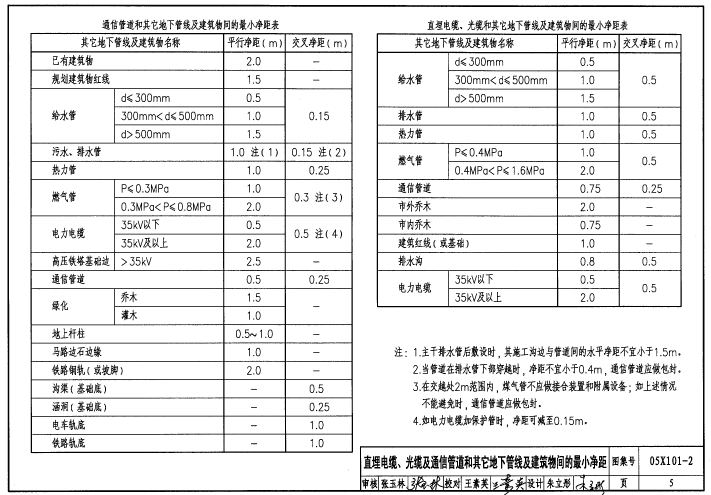 直埋電纜、光纜及通信管道和其它地下管線及建筑物間的最小凈距5