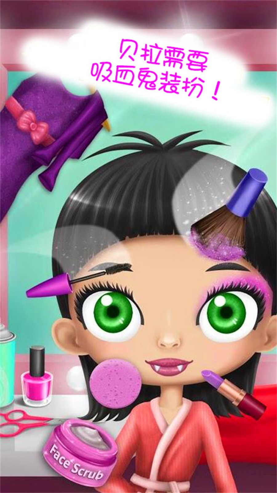 貝拉也想嘗試弗蘭肯斯坦的風格,讓她的夢想成真!把她的頭發(fā)梳起來,做一個時髦的怪物化妝!