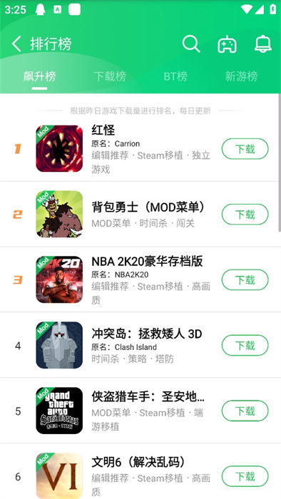 1、在軟件的排行榜中我們可以看到該平臺會有非常多熱門的游戲,有老款游戲也會有新上線的游戲,玩家可以自由的選擇;