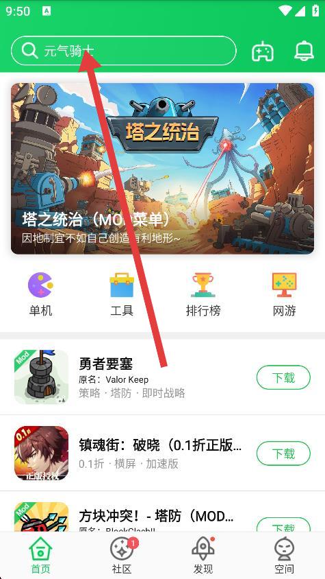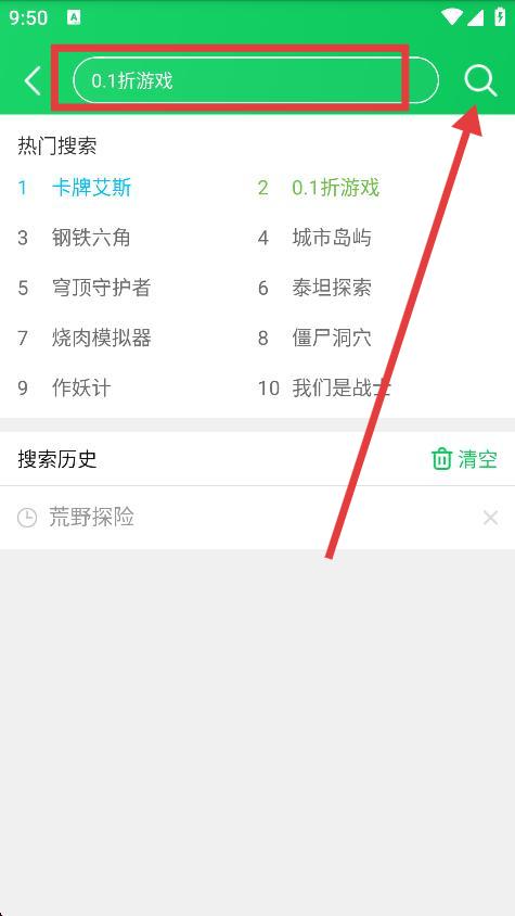 2、輸入想要下載的游戲名稱,輸入完成后點(diǎn)擊搜索圖標(biāo)。