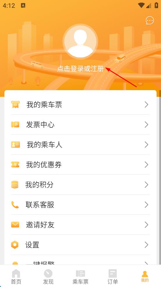 2、在“我的”頁面,點擊“點擊登錄或注冊”選項。