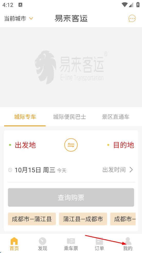 1、打開易來客運APP,進(jìn)入首頁后,點擊頁面右下角“我的”按鈕。