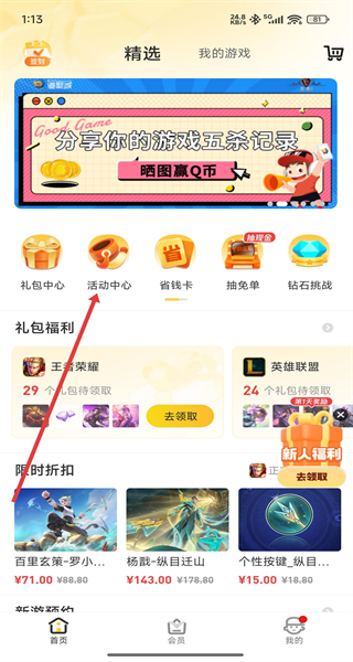 4、在登錄成功進(jìn)入首頁(yè)中,可以點(diǎn)擊活動(dòng)中心,進(jìn)入查看最近活動(dòng)信息。