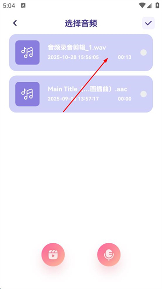 3、進(jìn)入選擇音頻頁面,選擇需要裁剪的音頻文件。