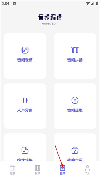 1、打開音頻編輯APP,點(diǎn)擊底部音頻按鈕,進(jìn)入音頻編輯頁面。