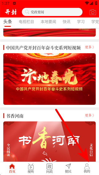 1、在云上開封app首頁,點擊右下角我的選項,進入個人頁面。
