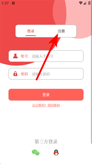 3、在登錄注冊頁面,點擊注冊選項,進入注冊信息填寫頁面。
