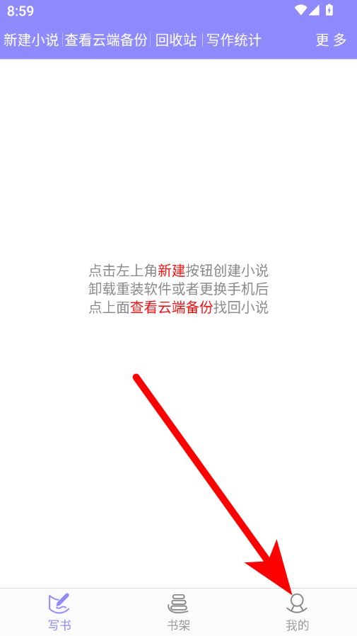 1、打開手機(jī)寫小說APP,點擊底部我的選項,進(jìn)入個人頁面。