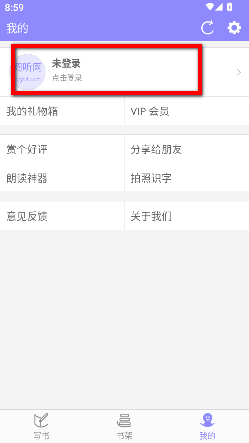 1、在手機(jī)寫小說APP的寫書頁面,點擊右下角我的選項,進(jìn)入個人中心界面。