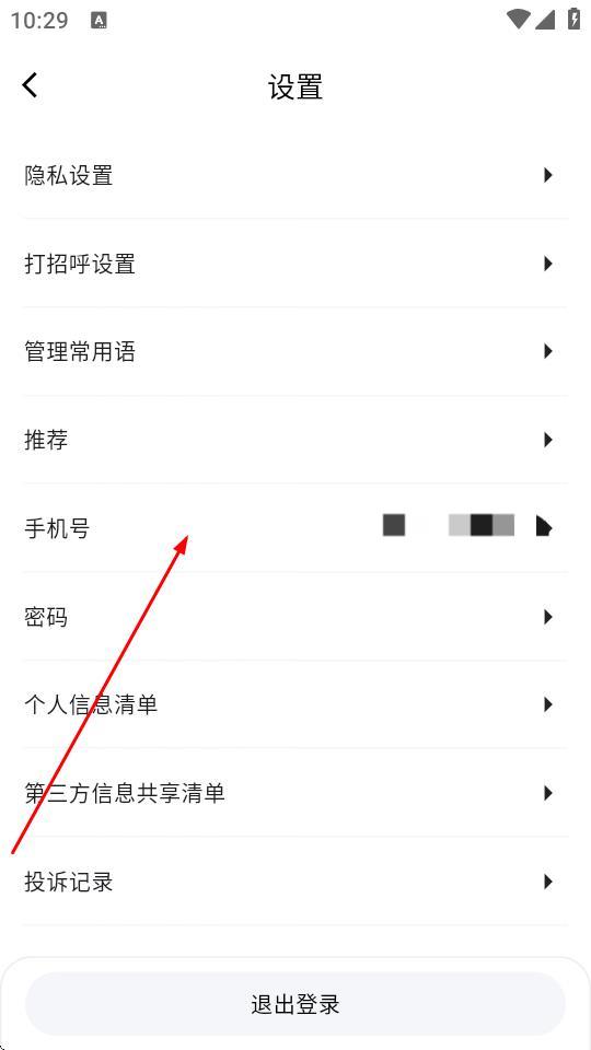 3、在設(shè)置頁(yè)面中,點(diǎn)擊手機(jī)號(hào)選項(xiàng)。