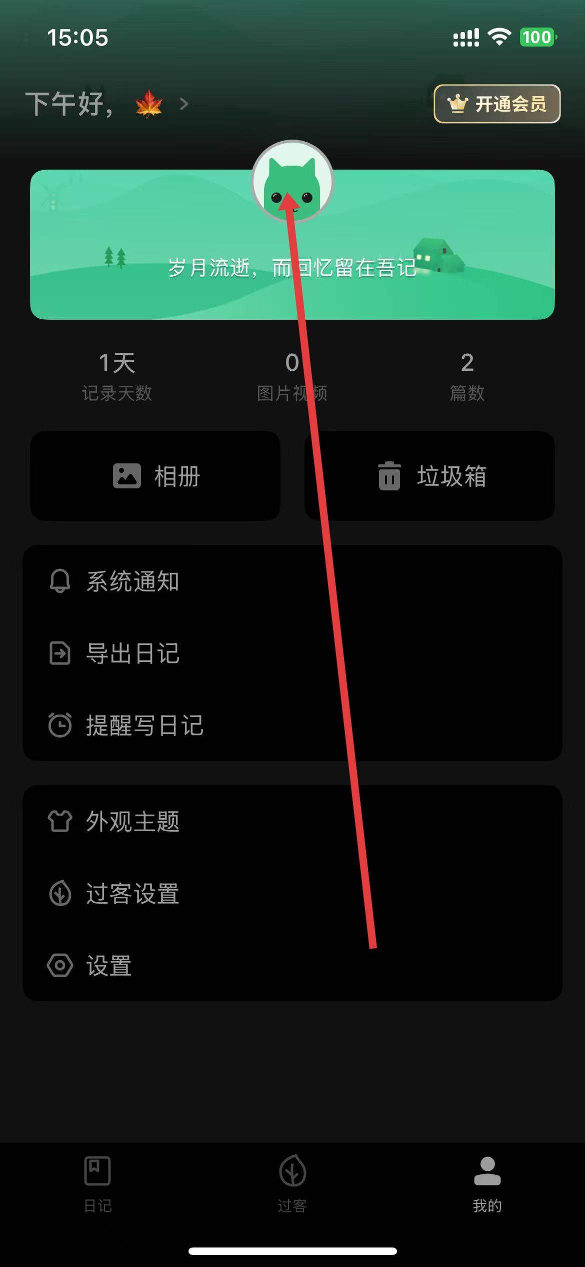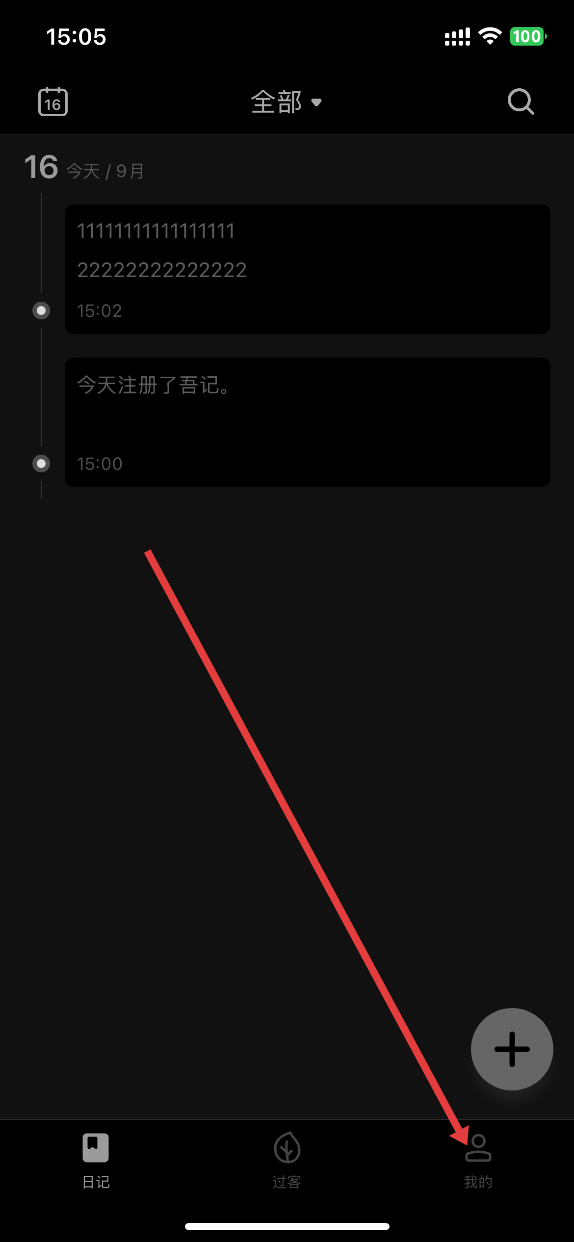 1、打開吾記日記APP,點擊底部導航欄最右側我的。