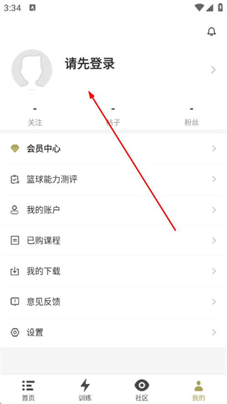 2、點(diǎn)擊最上方的請(qǐng)先登錄區(qū)域,進(jìn)入登錄頁(yè)面。