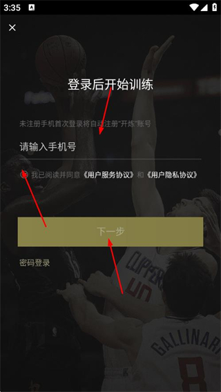 3、在登錄頁(yè)面輸入手機(jī)號(hào),勾選協(xié)議,點(diǎn)擊下一步。