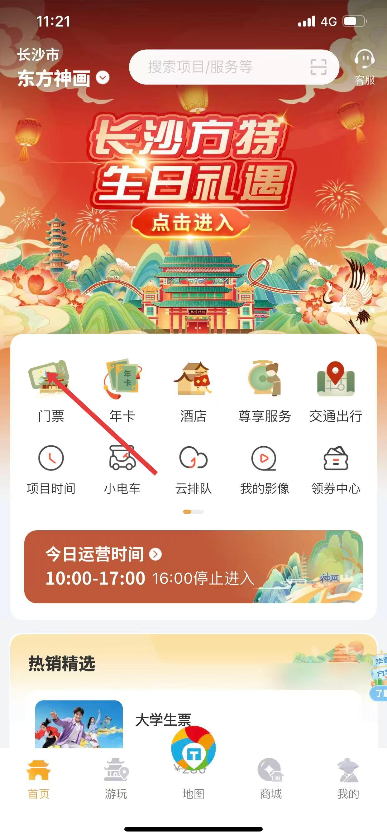 1、打開方特旅游APP,在首頁點(diǎn)擊門票選項(xiàng)。