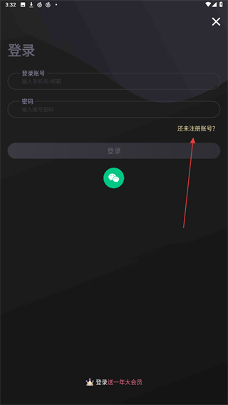 3、進(jìn)入登錄的界面內(nèi),點(diǎn)擊還未注冊賬號(hào)的區(qū)域。