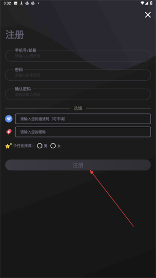 4、在注冊的界面下,輸入相關(guān)內(nèi)容后點(diǎn)擊注冊按鈕即可。