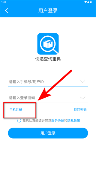 3、在用戶登錄頁(yè)面點(diǎn)擊手機(jī)注冊(cè),進(jìn)入手機(jī)注冊(cè)頁(yè)面。