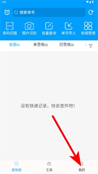 1、打開快遞查詢寶典APP,點(diǎn)擊右下角我的,進(jìn)入個(gè)人頁(yè)面。