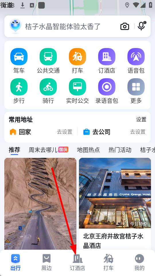 1、打開百度地圖,點擊底部導(dǎo)航欄的訂酒店選項。