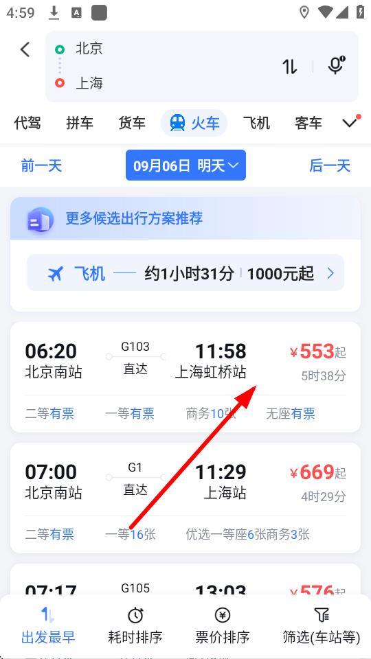 4、點擊查詢,在結(jié)果里選車次,按提示完成訂票操作。