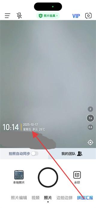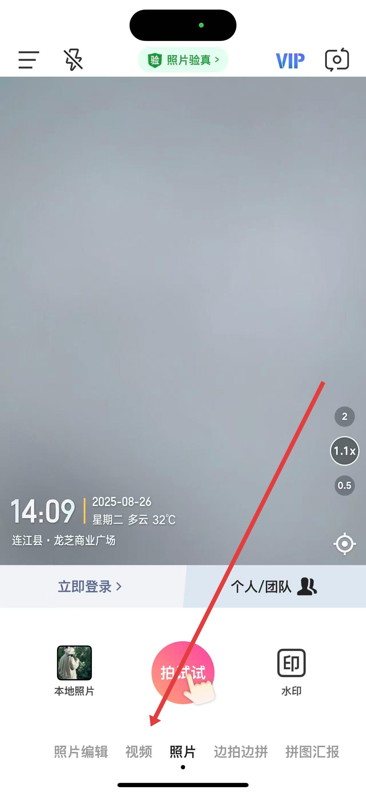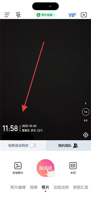 1、打開今日水印相機應用,在底部導航欄點擊“照片”選項進入拍攝界面。