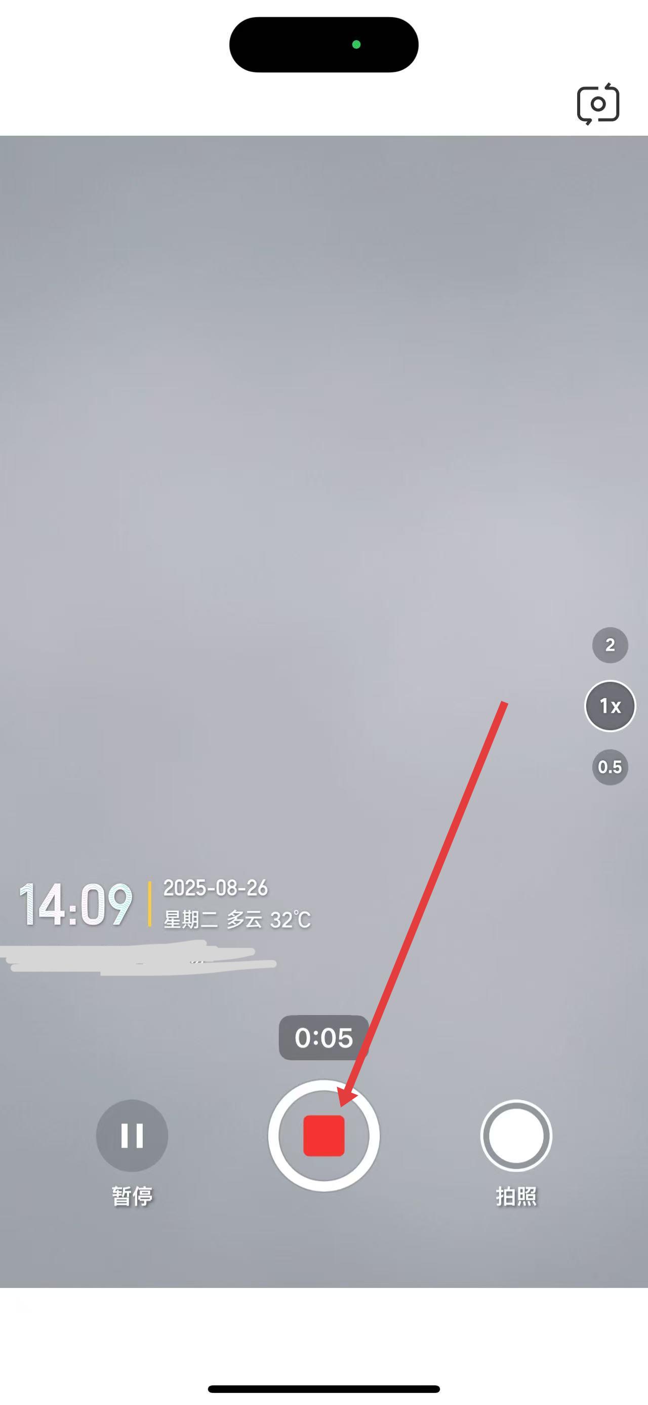 3、拍攝完成后,點擊拍攝按鈕中的紅色方形按鈕,結(jié)束視頻拍攝。
