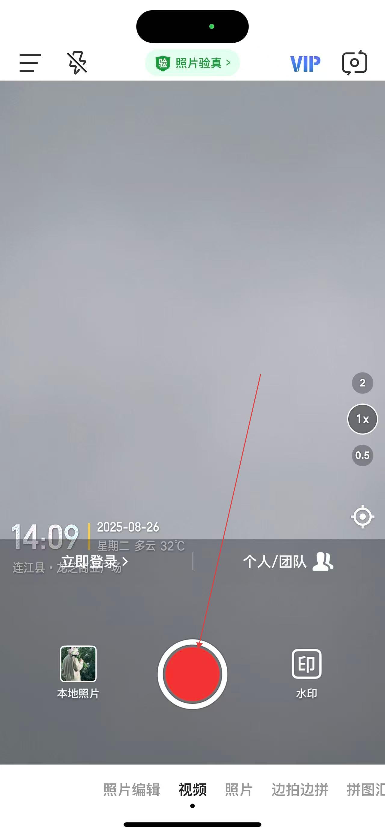2、進入拍攝界面后,點擊屏幕下方的紅色圓形拍攝按鈕,開始拍攝視頻。