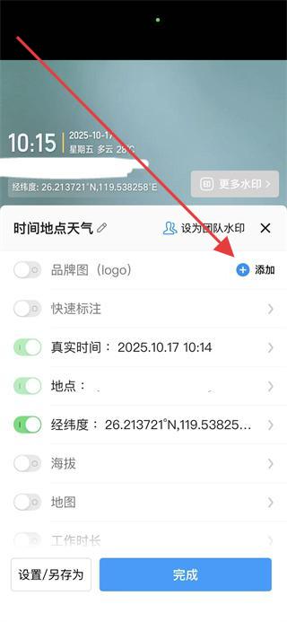4.格式選擇完成后,點擊完成按鈕,即可成功添加經(jīng)緯度水印。