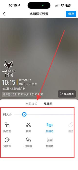 4、在樣式設置頁調(diào)大小、換位置,調(diào)整好后點擊保存即可。