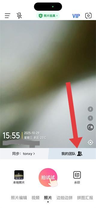 1、打開今日水印相機應用,點擊頁面中的我的團隊選項。