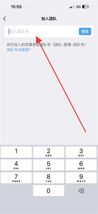 4、以搜索團隊號為例,在輸入框中輸入團隊號后點擊搜索,按照提示完成加入團隊操作即可。