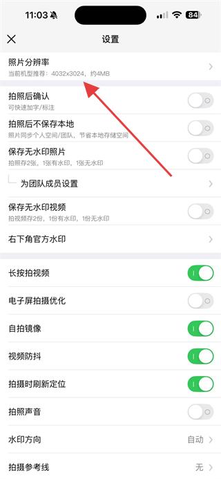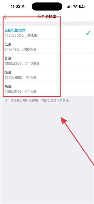 3、在設置頁面中點擊照片分辨率,進入分辨率選擇頁面。