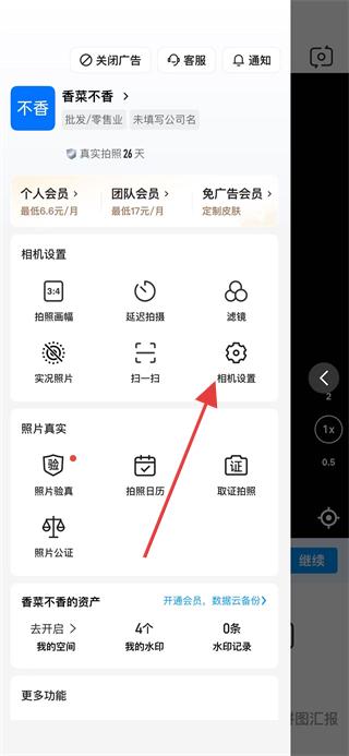 2、在功能菜單中點擊相機設置,進入設置頁面。