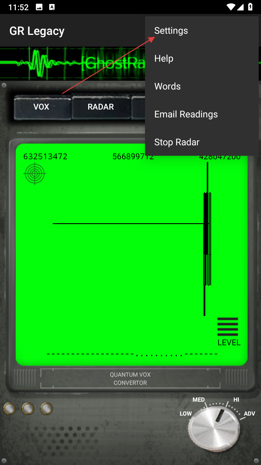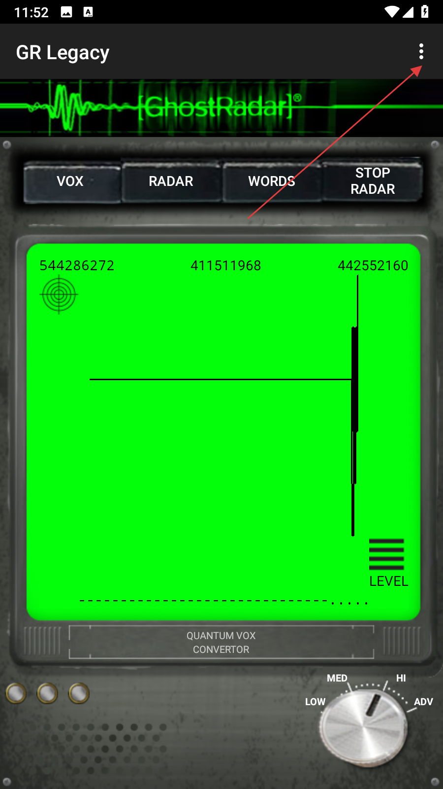 就是你打開后,按radar就能看見一個雷達,有光點,顏色代表信號的強度,紅色信號最強,再來是黃色、緊接著是綠色,而蘭色的信號則是最微弱的,就是有光點就說明周圍可能有ghostwords,就是偶然冒出的幾個單詞,就是ghost想說的話。
