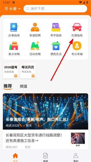 1、打開本地寶APP,在首頁點擊交通指南選項。