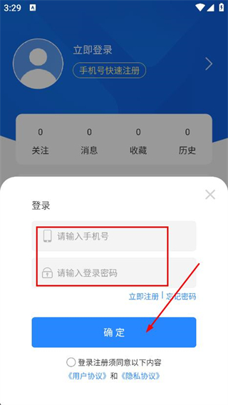 4、輸入手機(jī)號(hào)和密碼,點(diǎn)擊確定,即可完成登錄。
