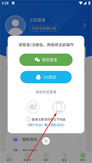 3、在登錄彈窗中,找到并選擇下方手機(jī)登錄選項(xiàng)。