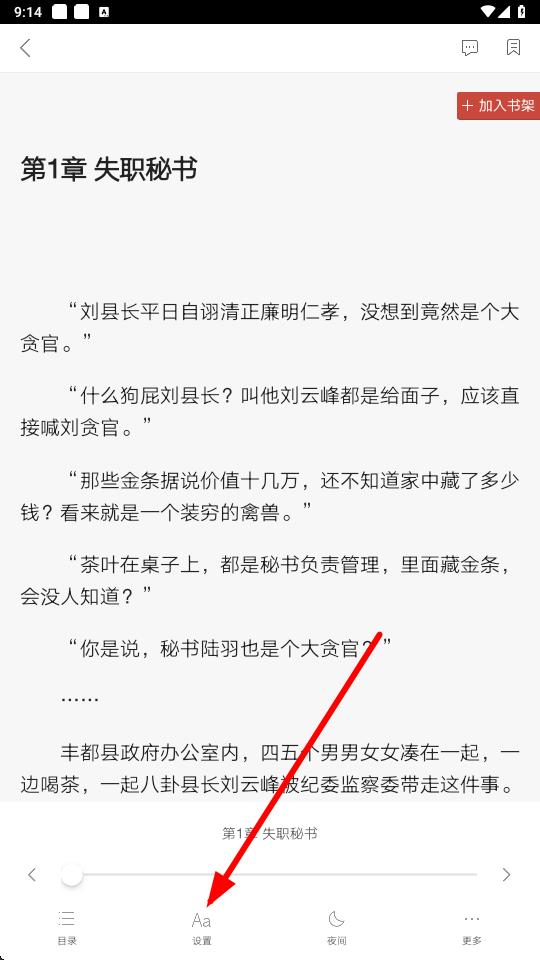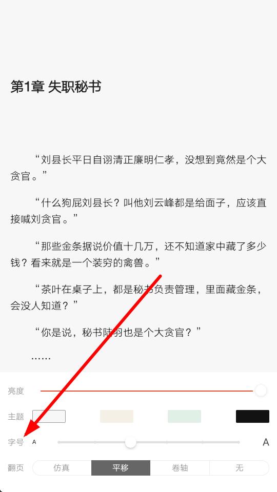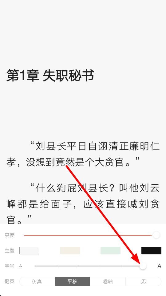 3、向左拖動滑塊減小字號,向右拖動增大字號,設置后即可按新字號閱讀。