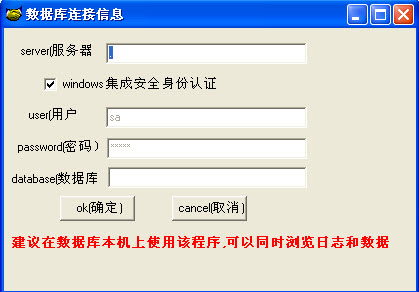 程序功能:找回誤刪除的數(shù)據(jù):請(qǐng)?jiān)赟QL數(shù)據(jù)庫(kù)文件所在機(jī)器上運(yùn)行該程序,否則只能瀏覽日志,無(wú)法瀏覽刪除的表數(shù)據(jù)。