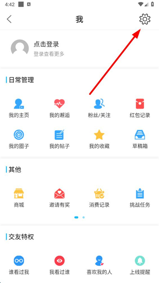 2、在我的頁面點擊右上角設置圖標,進入設置頁面。