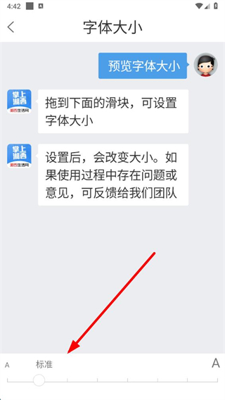 4、在字體大小設置頁面拖動滑塊,即可調(diào)整字體大小。