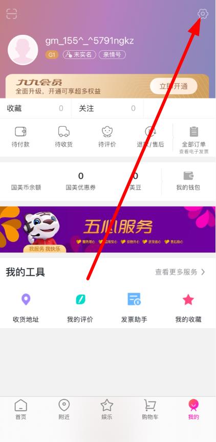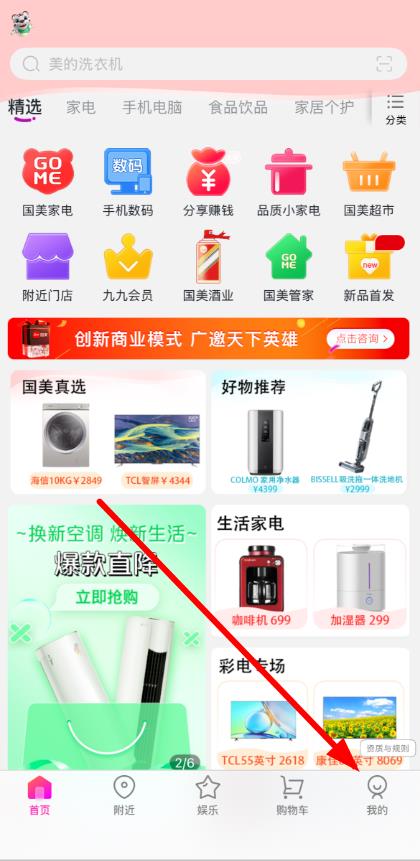 1、打開國美App,點擊底部導(dǎo)航欄中的我的選項,進入個人頁面。