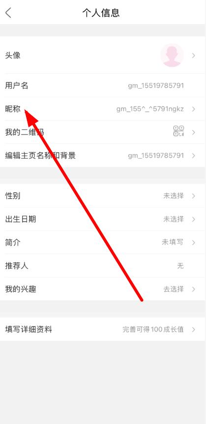 4、在個人信息頁面中,找到昵稱選項,點擊右側(cè)的昵稱內(nèi)容進行修改,輸入新昵稱后保存即可。