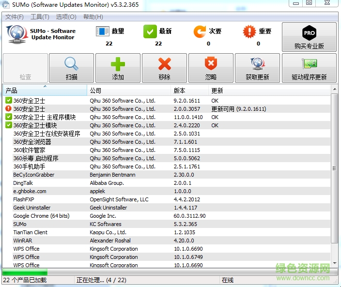 sumo軟件是一款軟件升級(jí)管理工具,可設(shè)置自動(dòng)更新電腦中安裝的軟件,讓其在空閑網(wǎng)絡(luò)下自主完成更新,讓你更加省心,來(lái)綠色資源網(wǎng)免費(fèi)體驗(yàn)吧!