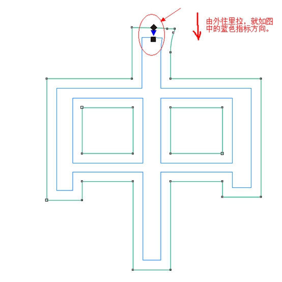 選中交互式輪廓圖工具后,再在字上由外向里拉