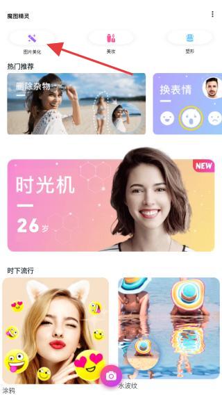 1、打開魔圖App,用戶需在首頁頂部點擊圖片美化的選項。