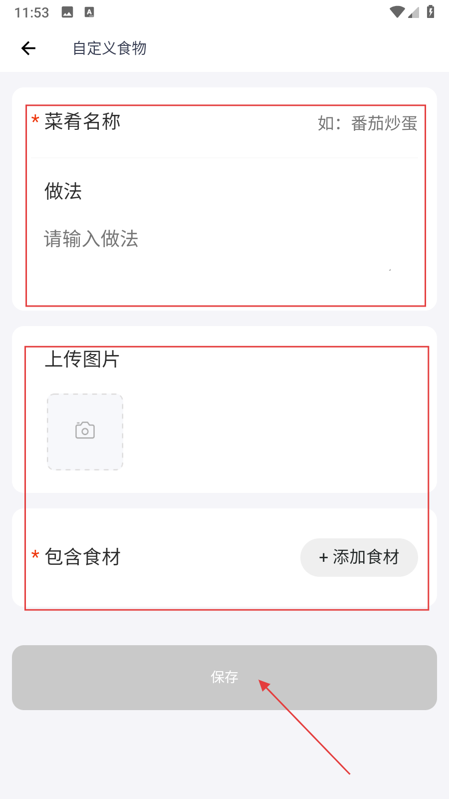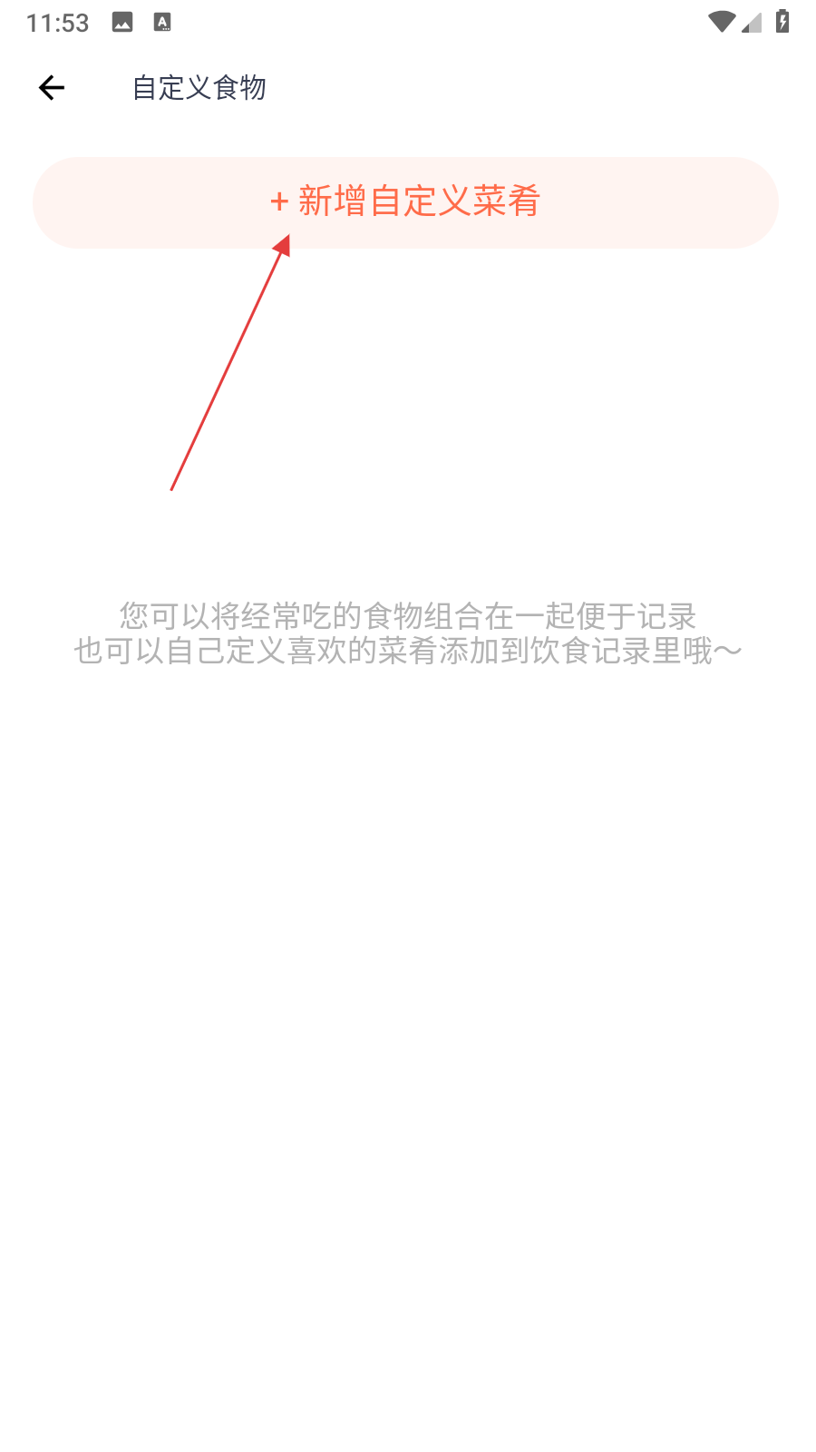 3、在自定義食物界面,點(diǎn)擊新增自定義菜肴,進(jìn)入自定義菜肴編輯頁(yè)面。