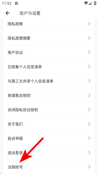 3、在賬戶與設(shè)置頁(yè)選擇注銷賬號(hào),進(jìn)入注銷流程的頁(yè)面。