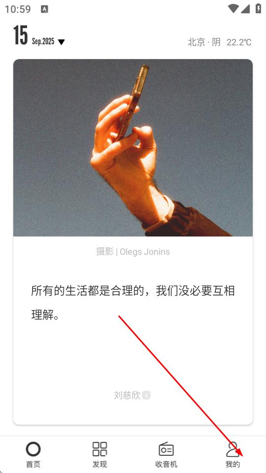 1、打開one一個(gè)App,點(diǎn)擊底部導(dǎo)航欄中的我的選項(xiàng)。